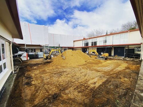 Arrowsmith was engaged to reconstruct the roof and rebuild the collaborative space of the admin block at Rotorua Girls' High. The project was initiated due to water ingress, multi-faceted roofing issues, and minor flooding. The collaborative space was constructed with levels in some places higher than the floor level.